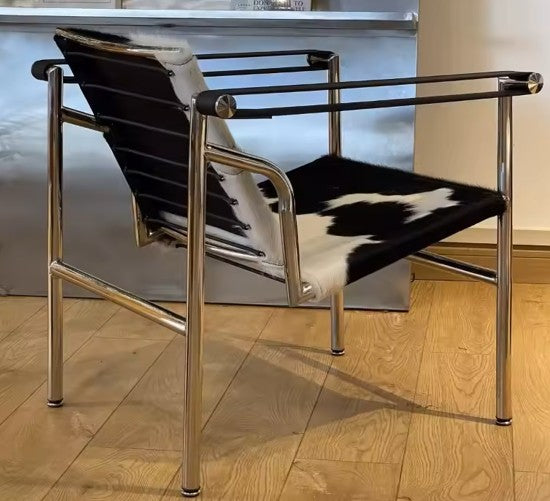 Vintage stainless steel chair in hair on hide